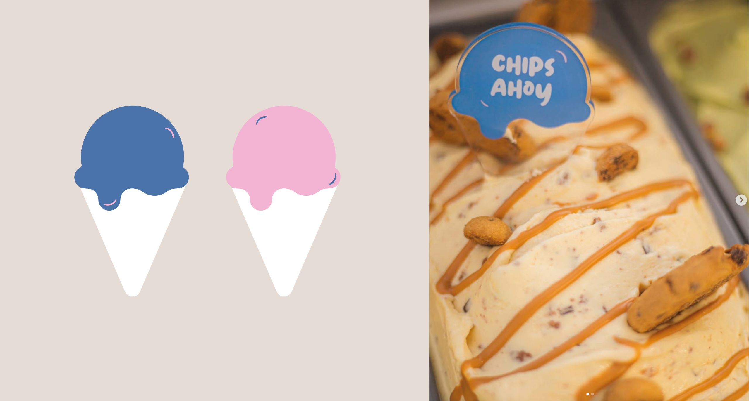 Concepção gráfica da marca e identidade visual da gelataria. Produção de elementos visuais para identificação de gelados, embalagens, ementas e menus de parede, presença nas redes sociais, assim como a projeção do balcão institucional, entre outros.